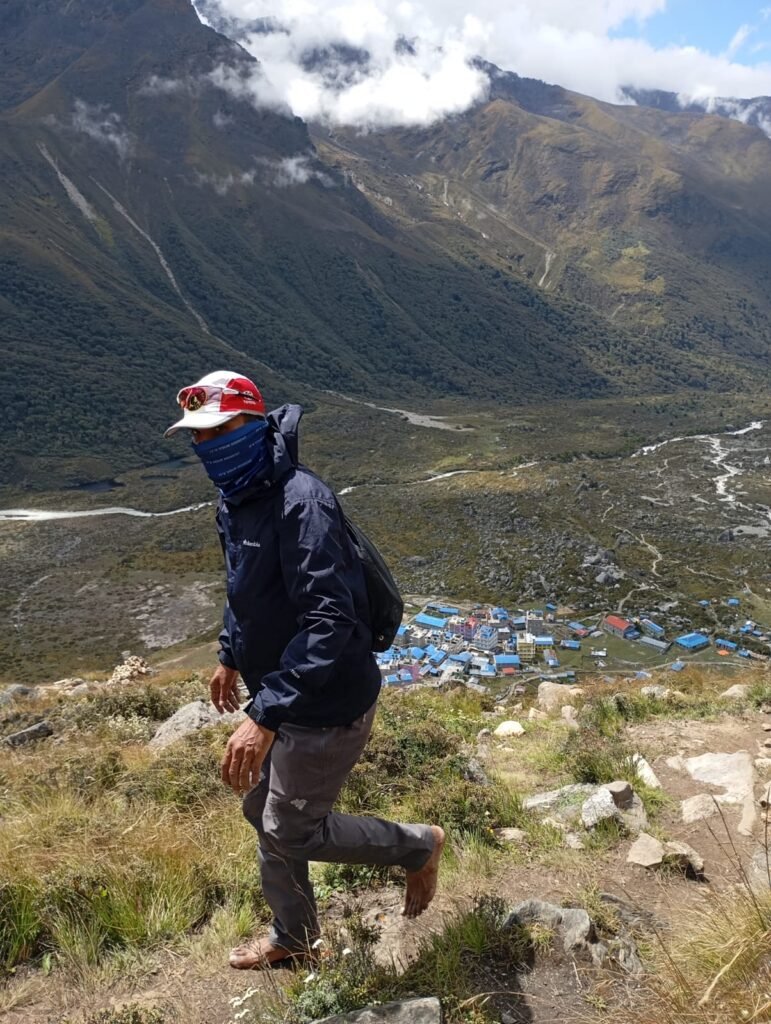 It took me three days to reach Kyanjin Gompa, the base camp. From there, I climbed Kyanjin Ri (4,700 metres)—barefoot. Inspired by barefoot runners, I wanted to feel the mountain directly beneath my skin. That climb will always remain one of the most powerful memories of my life.